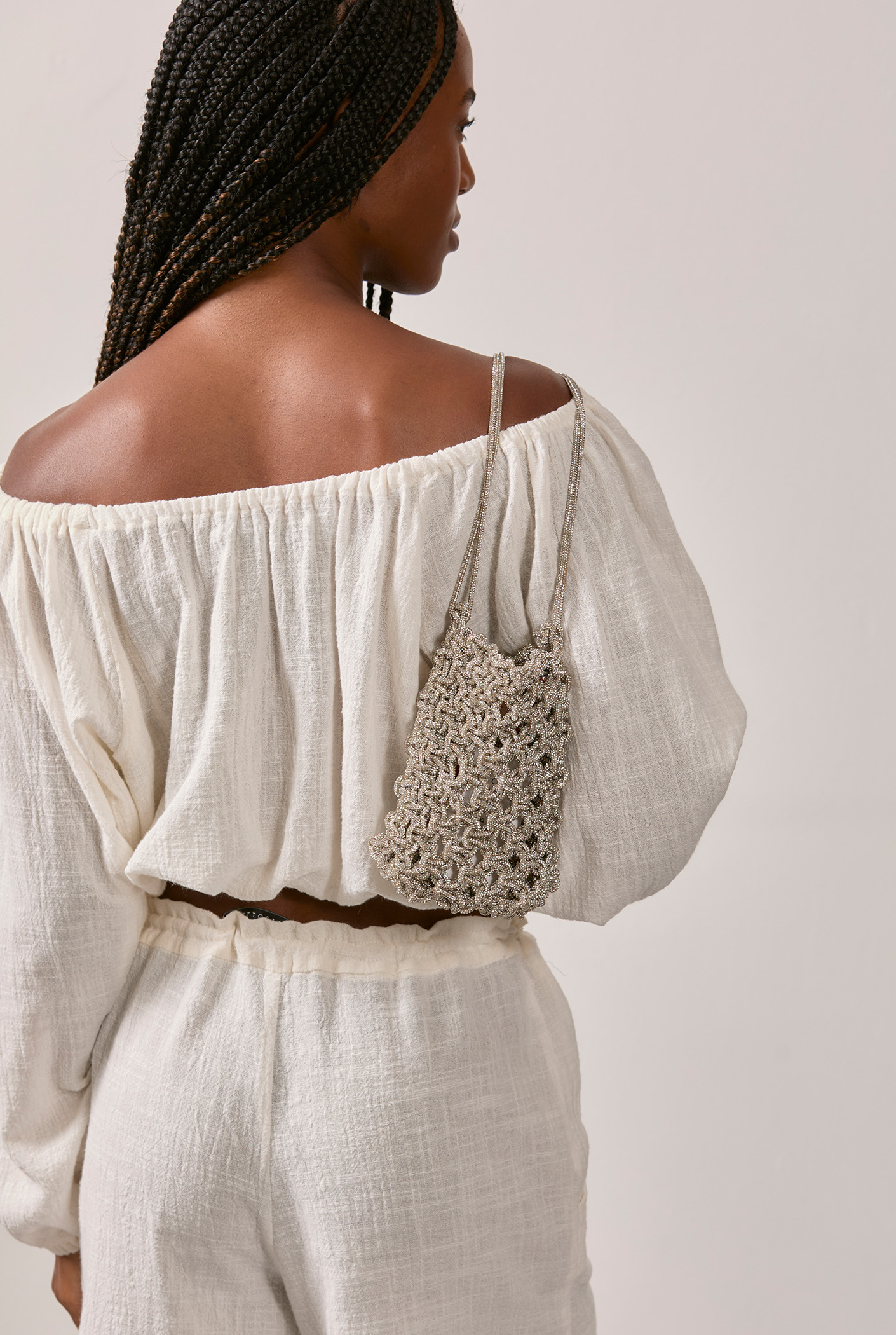 BLUSA CROPPED MANGA BUFANTE FRANZIDA OFFWHITE