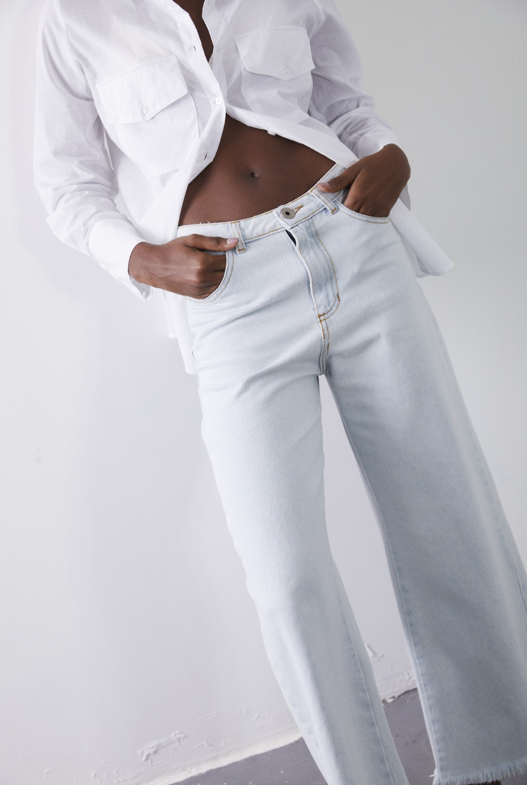Nossa Calça Pantalona Jeans Claro - confeccionada em algodão é uma peça essencial para seu guarda-roupa. Ótima opção para a noite - formando um look casual chic