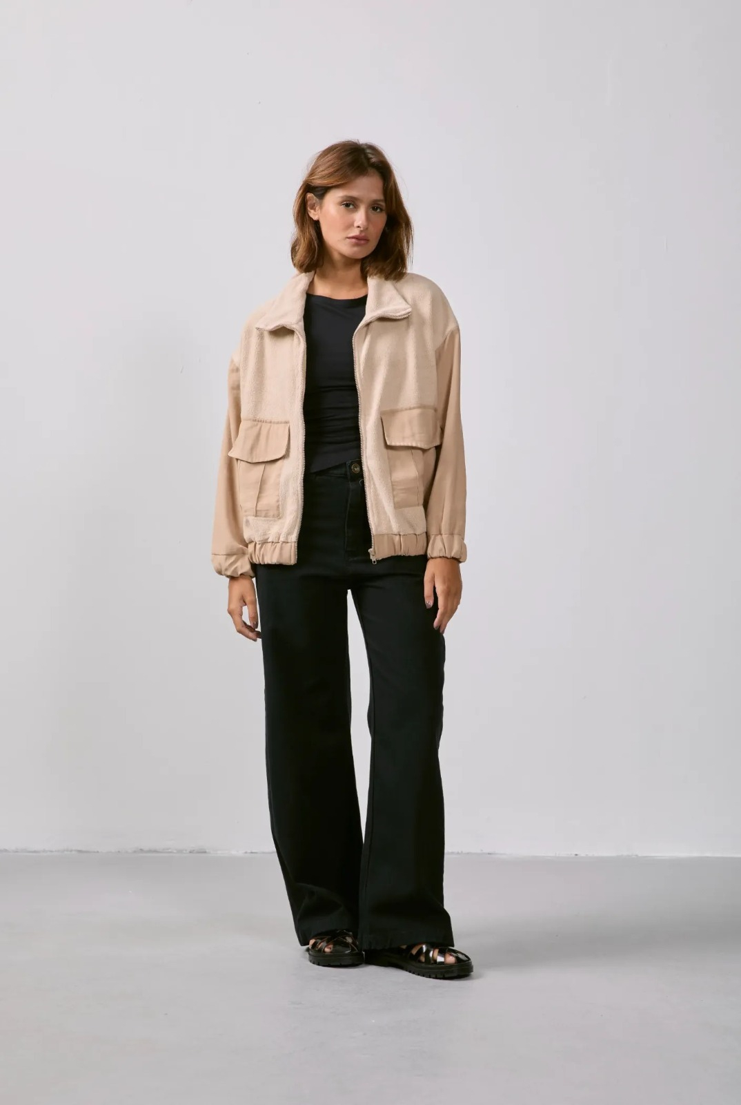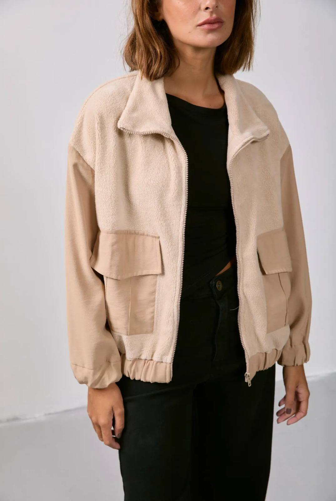 CASACO TEDDY BOLSO BEGE