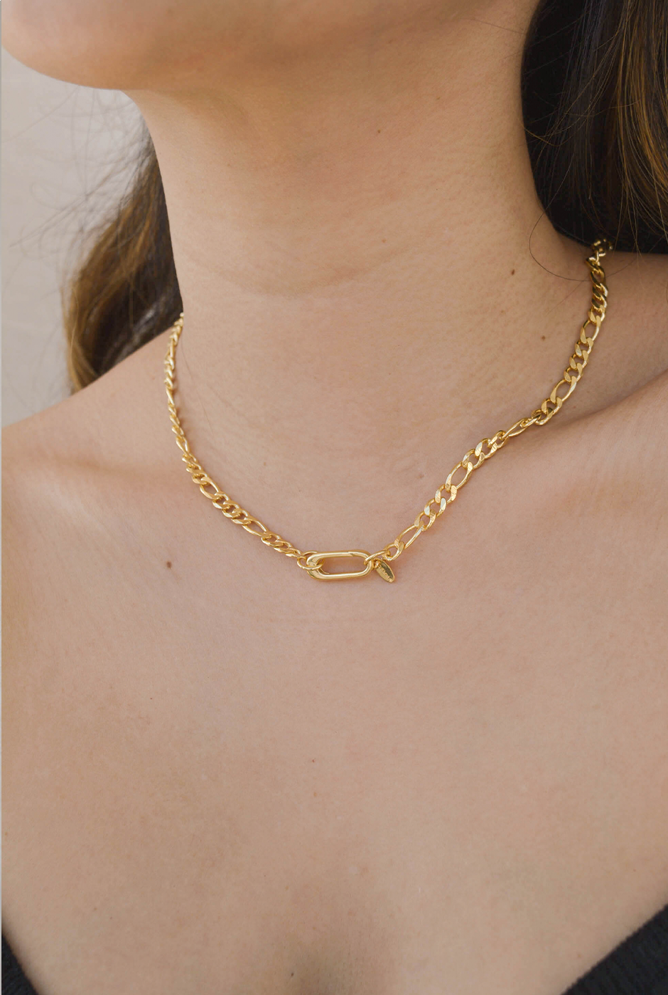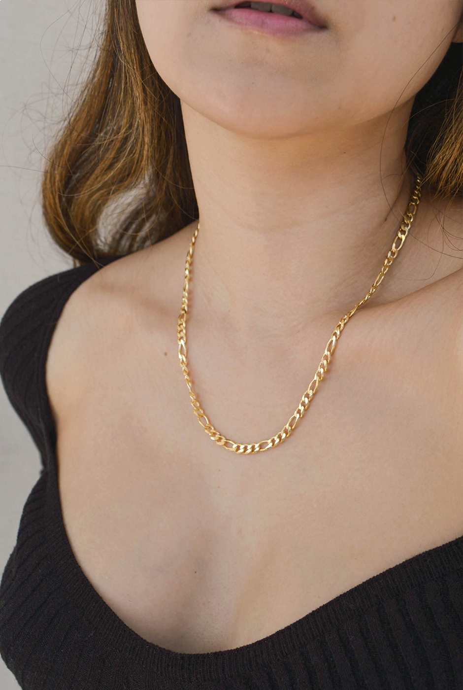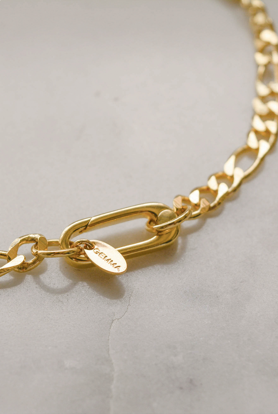 Descrição: Colar curto de corrente de elo clássico com fecho em elo solto. Tamanho: 45 cm de comprimento. Não possui extensor. Banho: 5 milésimos de ouro 18k.