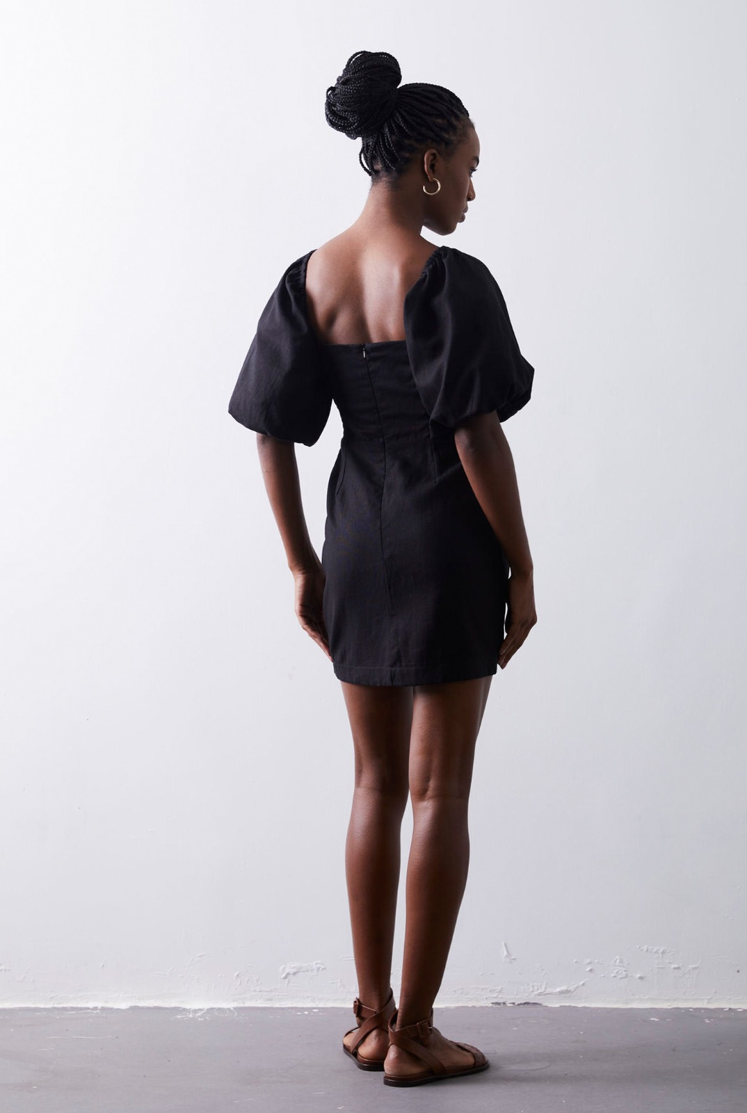 Nosso vestido Bufante Linen é confecionado em linho com viscose É uma peça elegante e versátil, adequada para uma variedade de eventos e situações.