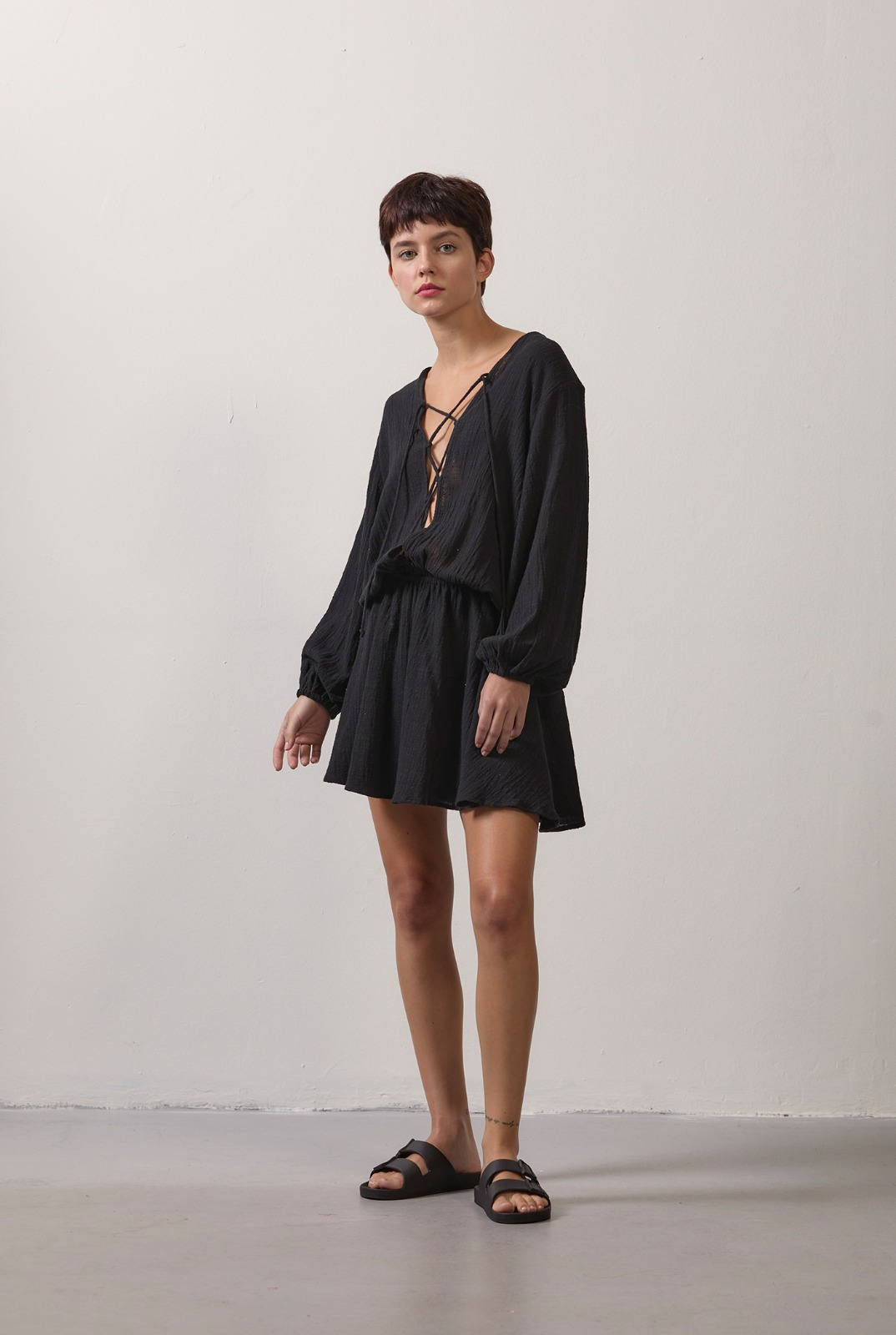 VESTIDO MINI DECOTE CRUZADO PRETO