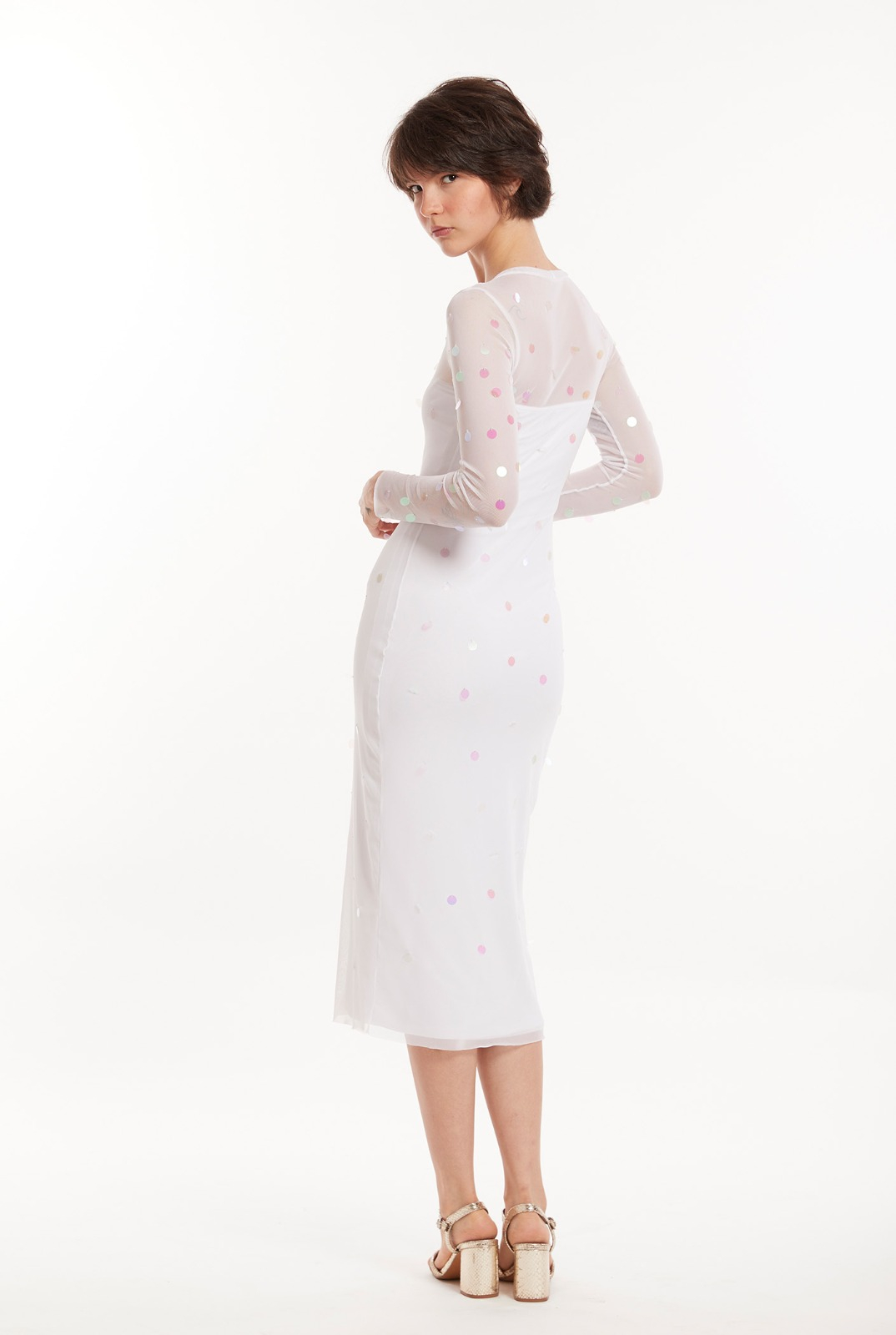 VESTIDO TULE LONGUETE LANTEJOULA OFFWHITE